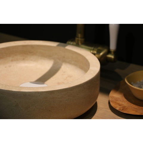 Forzalaqua Verona vasque à poser 40x40x12cm Ronde Pierre naturelle Travertin adouci