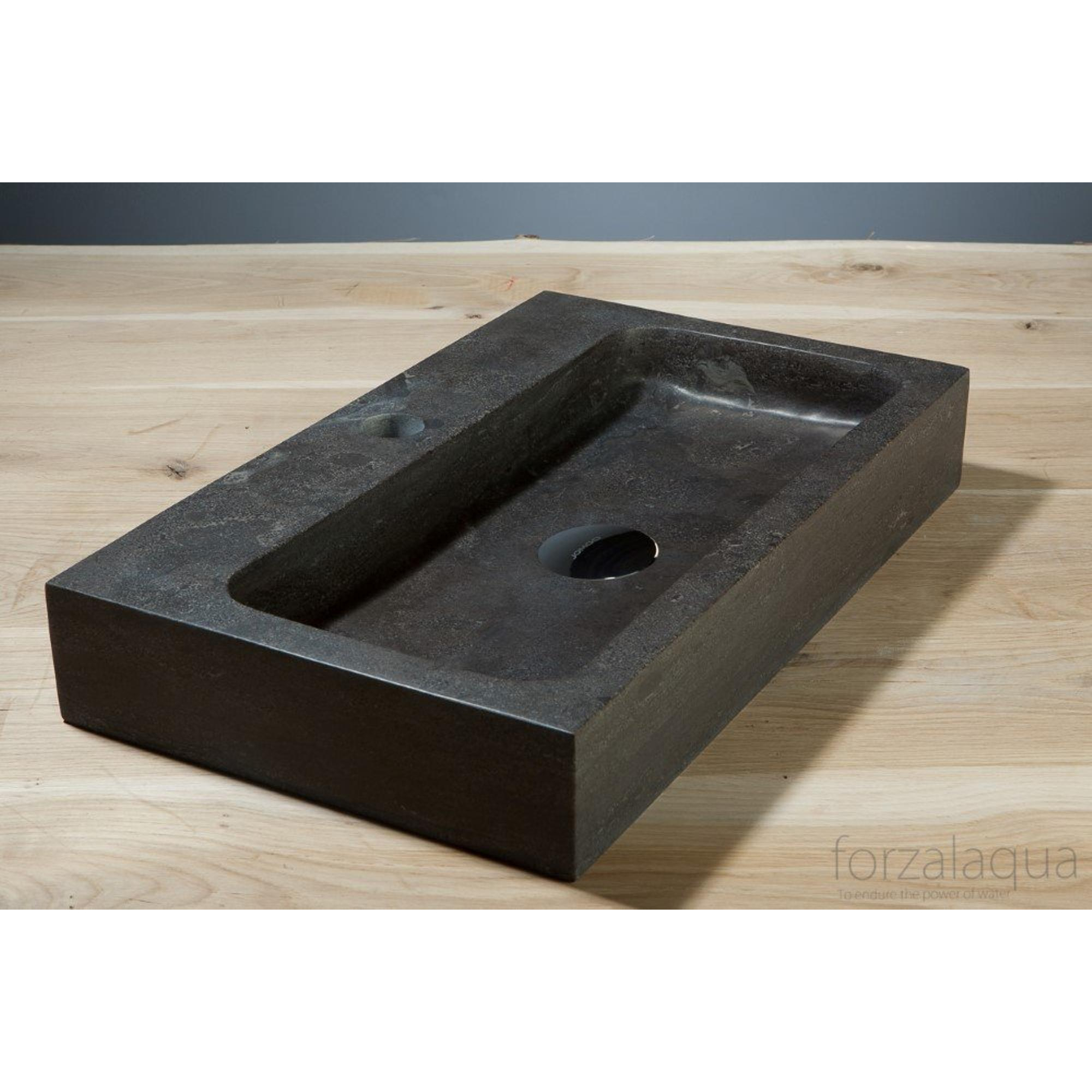 Forzalaqua Taranto lavabo 50x30x8cm Rectangulaire 1 trou de robinet Pierre naturelle Pierre bleue adoucie