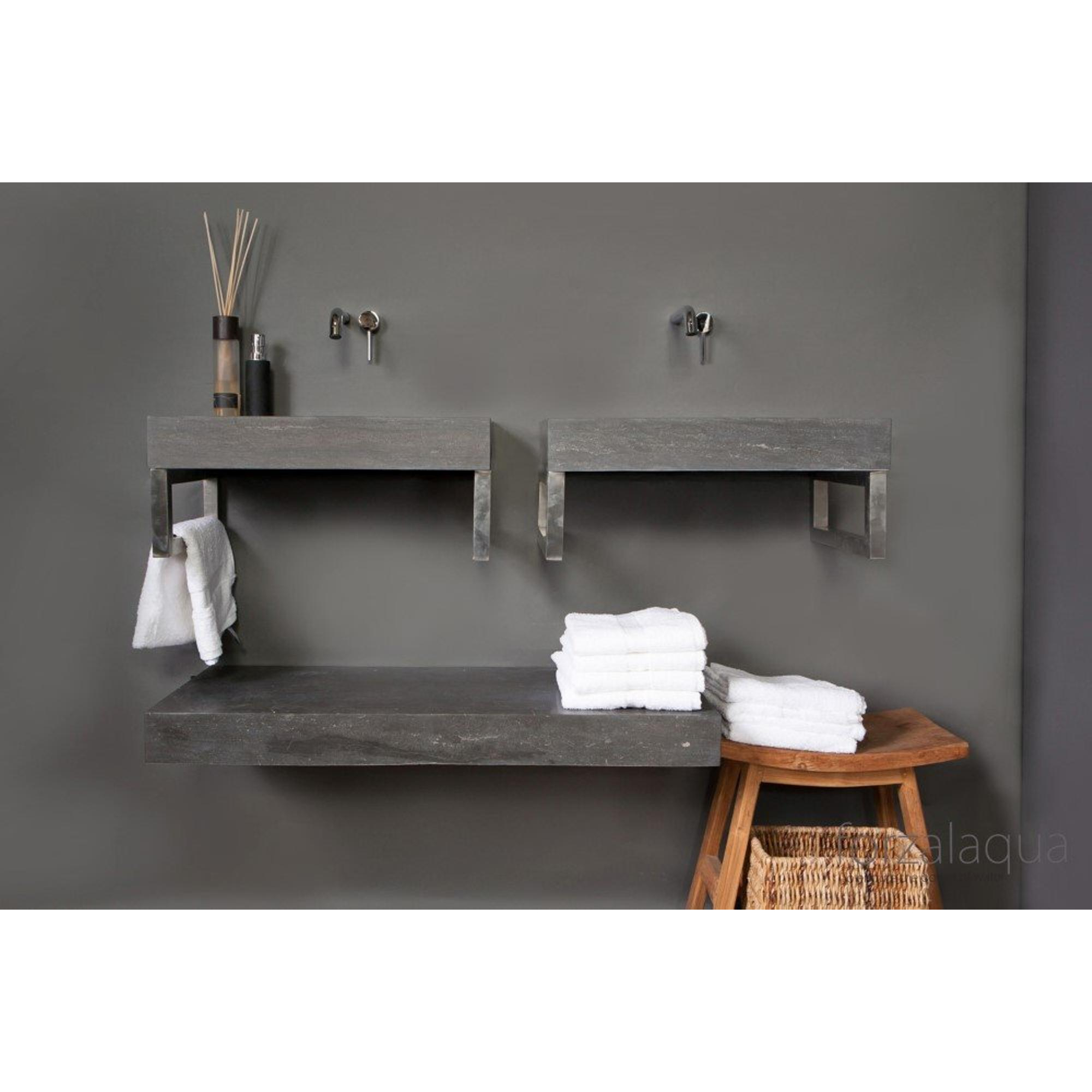 Le Palermo Doppio est fini à plat sur le dessous, ce qui permet de l'utiliser comme lavabo à poser. Le lavabo peut également être combiné avec nos meubles sous lavabo en chêne massif Gela, Ciro, Todi, Reno et Rosa. De plus, le Palermo Doppio peut être fixé librement au mur. Des supports supplémentaires peuvent être commandés pour cela.