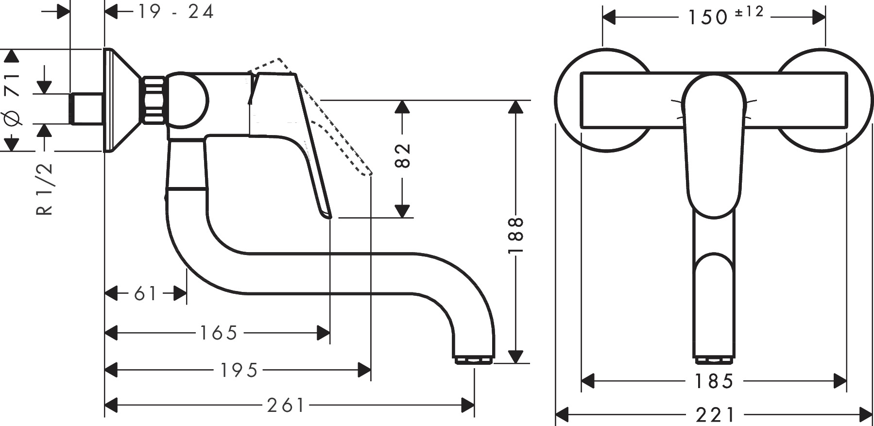 - Mitigeur de cuisine pour montage mural avec bec pivotant (180 degrés) pour une flexibilité optimale