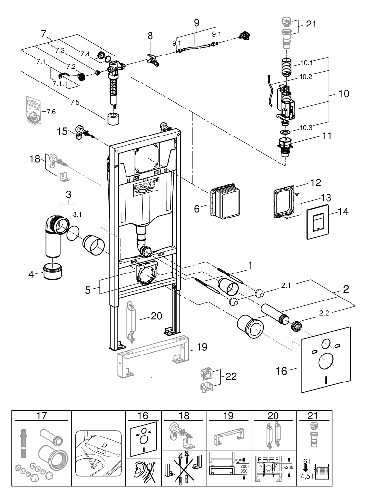 GROHE Rapid SL – le système d'installation avec kit d'insonorisation pour WC. Le système Rapid SL vous donne la liberté de créer la salle de bain idéale. Il permet une installation sûre et rapide de toilettes suspendues, de lavabos, de bidets muraux et d'urinoirs. Les cadres sont disponibles en trois hauteurs différentes. Les cadres sont préassemblés, disposent de points de fixation pour les WC suspendus et sont rigoureusement testés. Les cadres pour les WC peuvent supporter jusqu'à 400 kg.