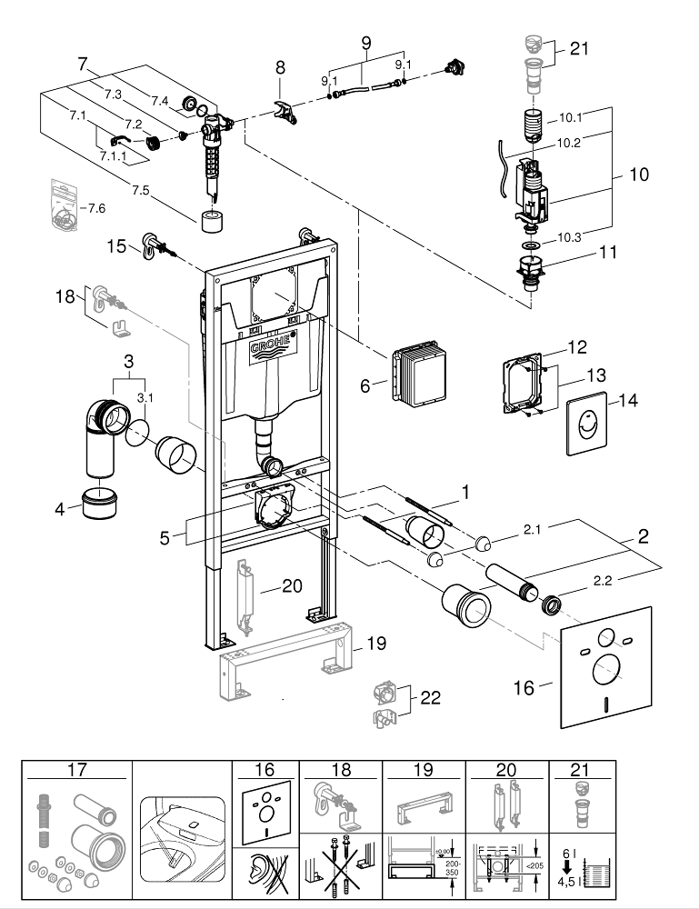 GROHE Rapid SL – le système d'installation complet et économiseur d'eau pour les WC. Le système Rapid SL vous donne la liberté de créer la salle de bain idéale. Il permet une installation sûre et rapide de WC suspendus, de lavabos, de bidets muraux et d'urinoirs. Les cadres sont disponibles en trois hauteurs différentes. Les cadres sont préassemblés, disposent de points de fixation pour les WC suspendus et sont rigoureusement testés. Les cadres pour les WC suspendus peuvent supporter jusqu'à 400 kg.