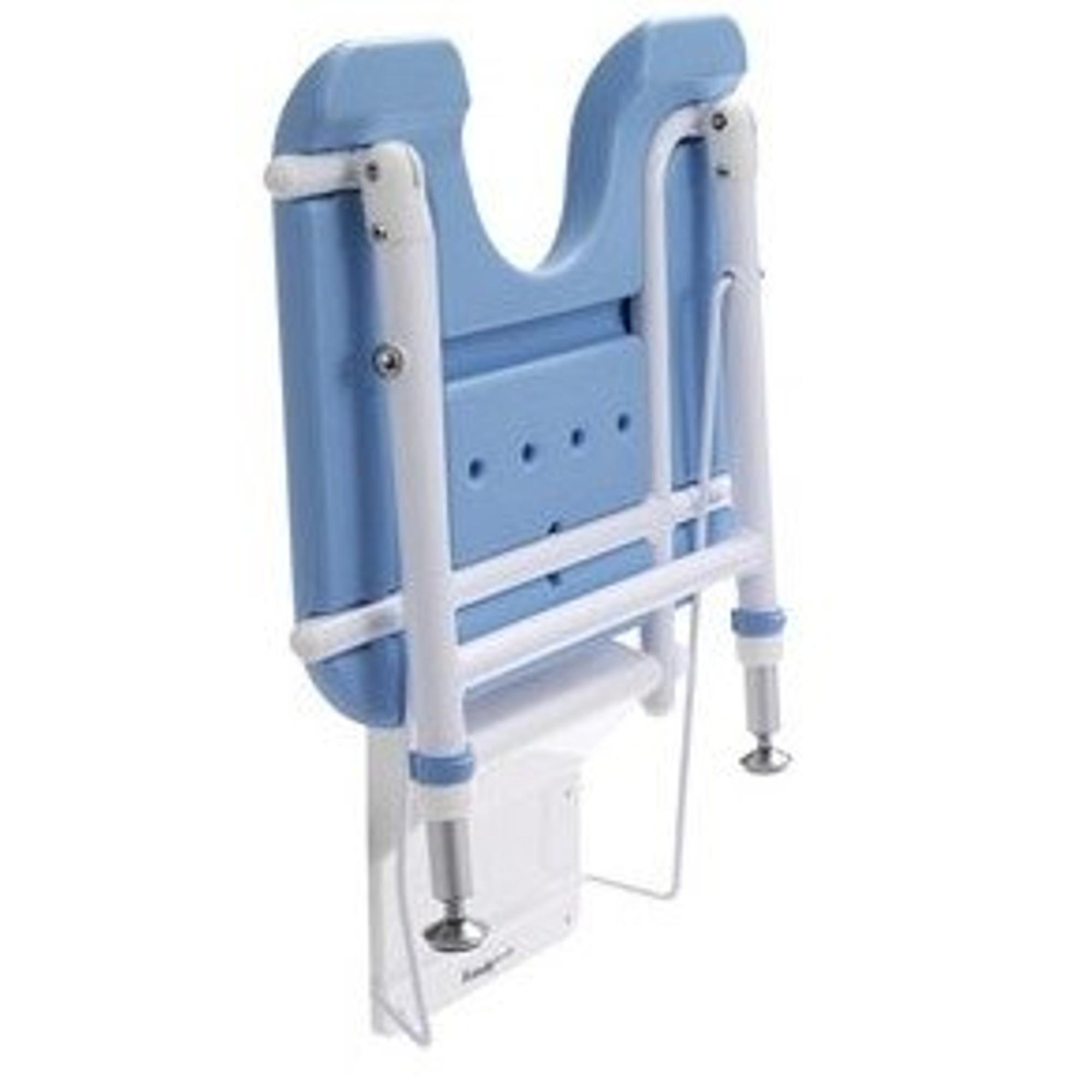 Le cadre est réalisé en aluminium revêtu de blanc (RAL 9010), ce qui le rend léger mais résistant et bien adapté aux environnements humides de la salle de bains. L’assise elle-même est fabriquée en matière synthétique : lisse, robuste et facile à nettoyer avec les nettoyants usuels pour salle de bains. La finition blanc-bleu offre un aspect frais et fonctionnel qui s’intègre parfaitement dans de nombreuses salles de bains, qu’il s’agisse d’un environnement de soins ou d’une salle de bains à domicile. Grâce à sa surface hygiénique et facile d’entretien, vous évitez l’accumulation de saletés et nettoyez rapidement la zone de douche. C’est agréable si vous utilisez le siège quotidiennement, mais aussi si vous êtes pris en charge par d’autres personnes.