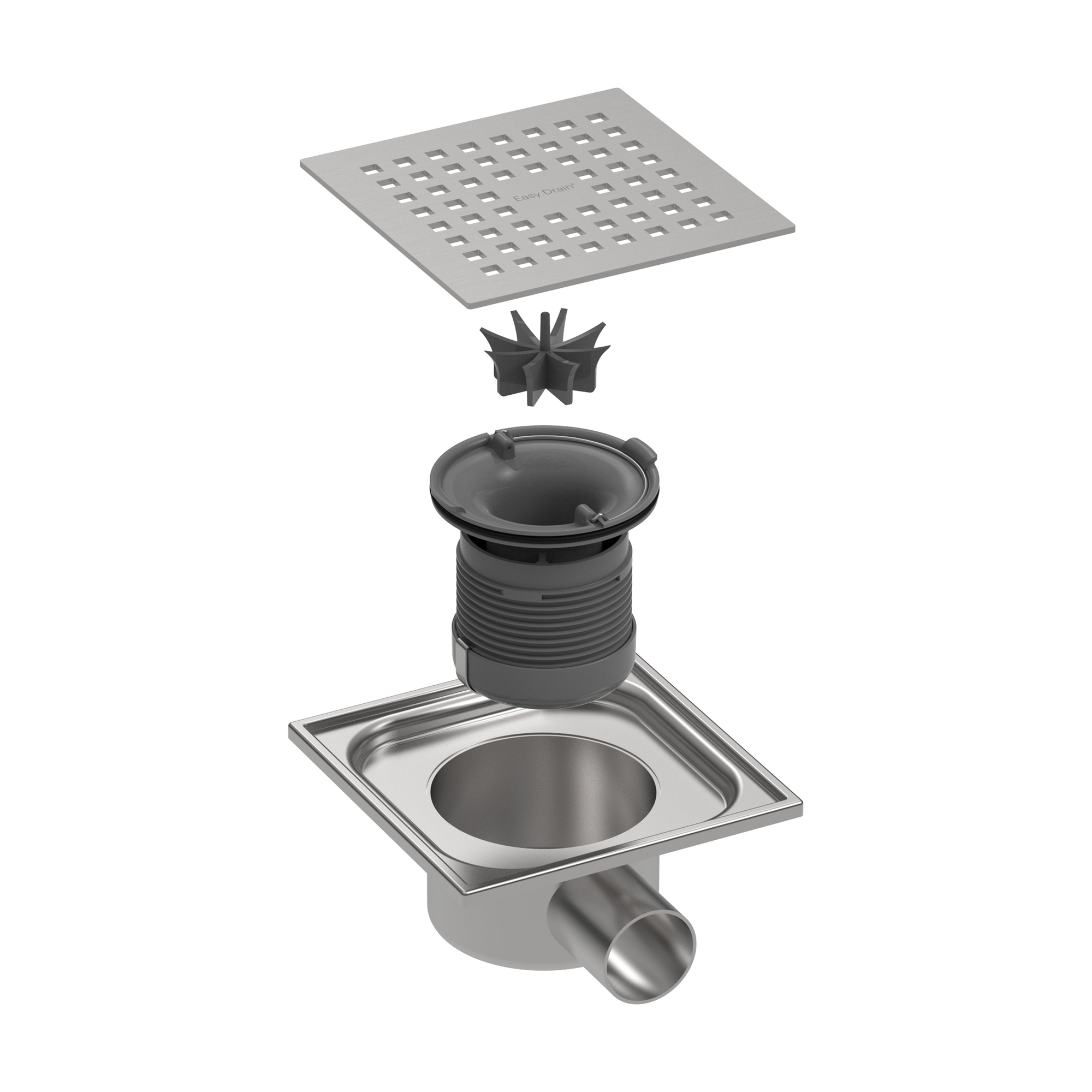 - Siphon de sol compact de 15 x 15 cm, idéal pour les douches modernes et les espaces humides