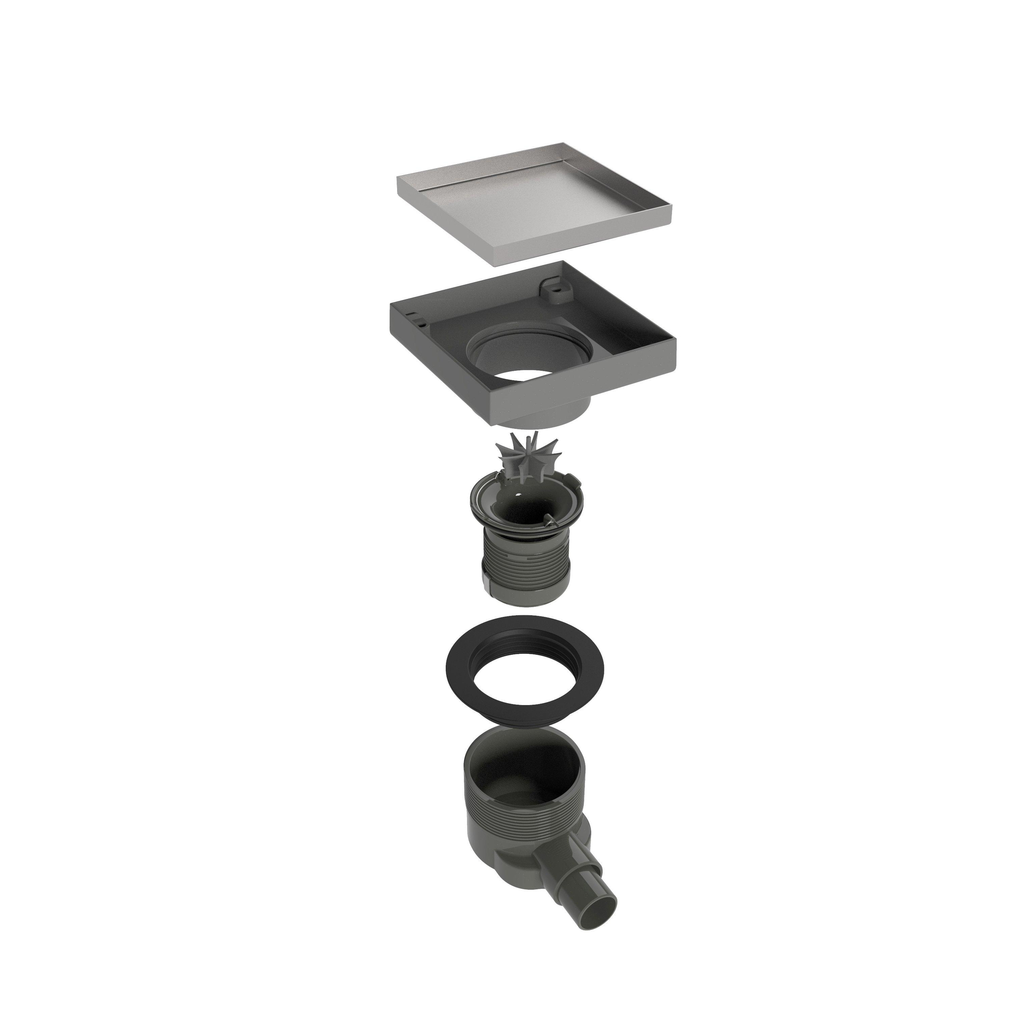 - Siphon de sol compact de 10x10 cm, idéal pour les douches à l’italienne carrelées et les petits espaces