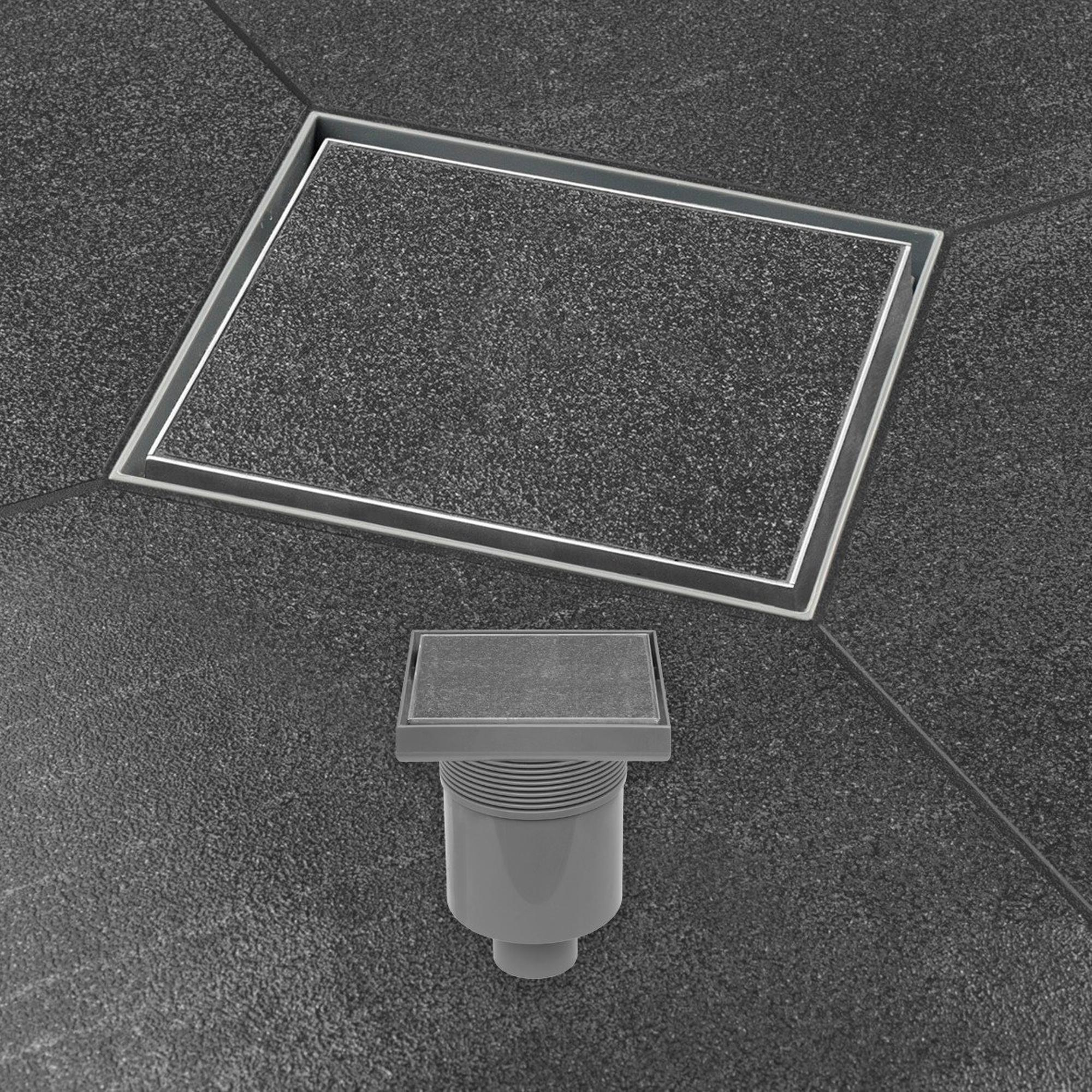 Easy Drain Aqua Quattro Siphon de sol pour carrelage avec élément de finition en ABS/grille carrelable en acier inoxydable et sortie verticale 15x15cm profondeur d''encastrement 117 155mm garde d''eau 50mm
