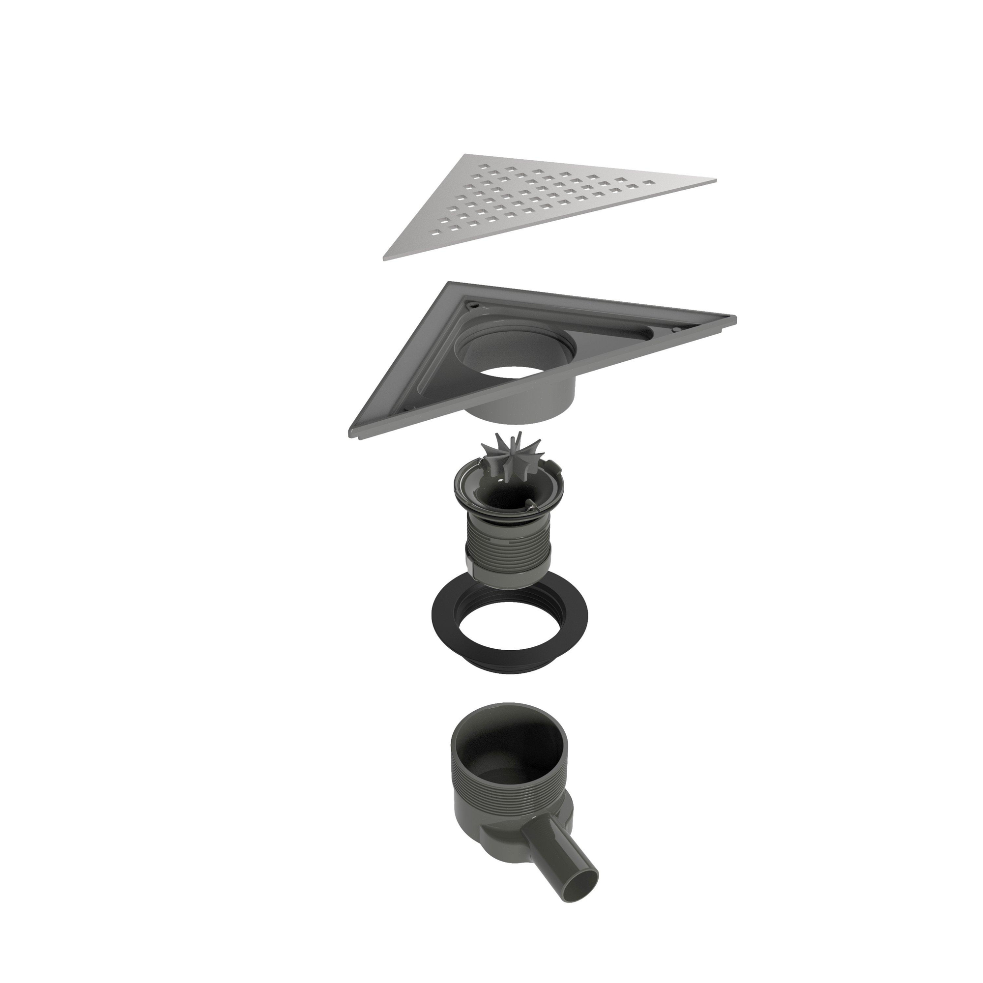 Easy Drain Aqua Delta siphon de sol triangulaire avec garniture ABS/pièce de finition ABS grille inox et sortie latérale 22x22cm garde d'eau 50 à 25mm
