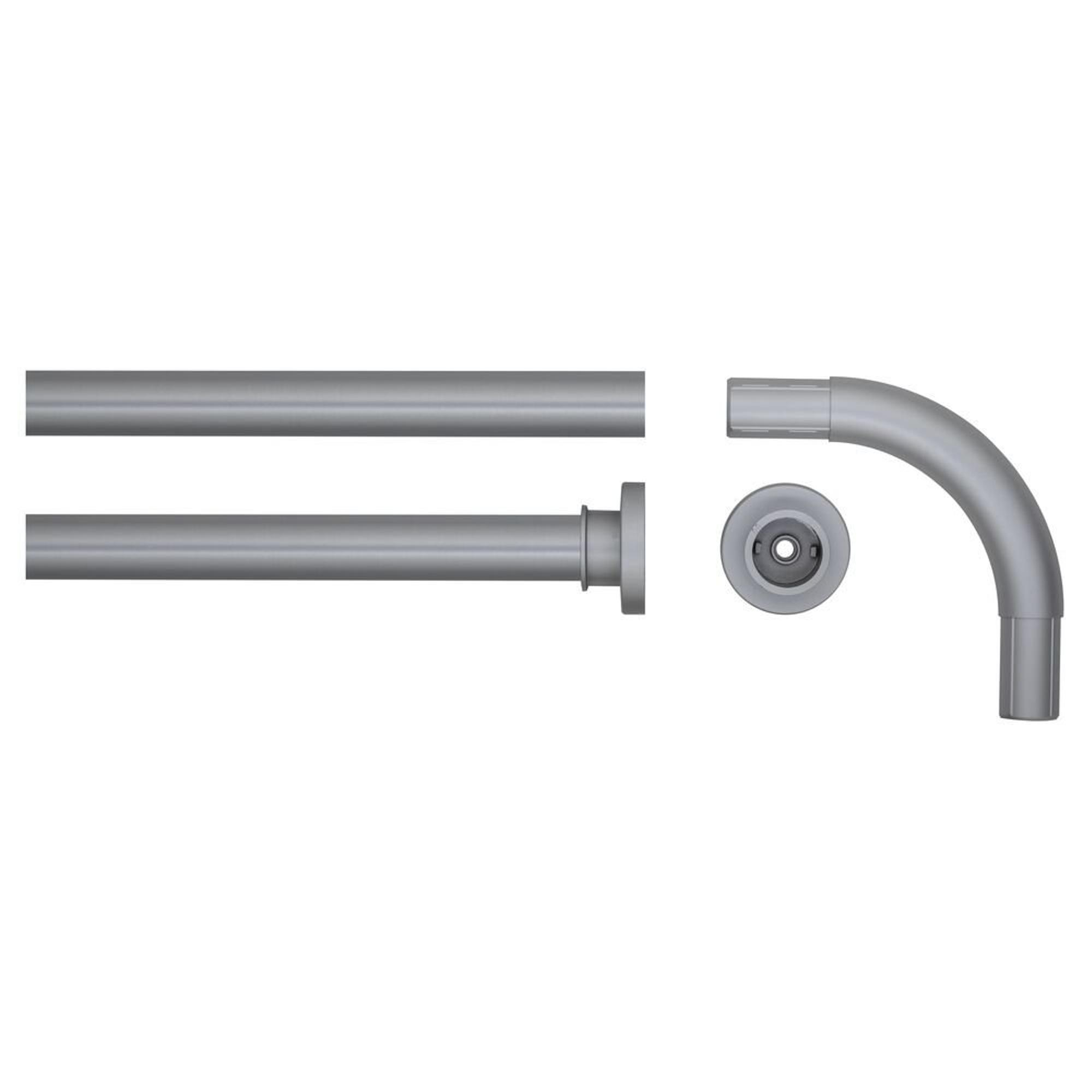 Cet ensemble a été spécialement conçu pour une configuration pratique en L de 90x90 cm, afin que vous disposiez immédiatement de la bonne forme pour une douche d’angle, sans devoir mesurer et ajuster. Les deux tringles et la pièce de raccordement forment un ensemble épuré qui permet à votre rideau de douche de coulisser facilement autour de la zone de douche, ce qui permet de maintenir les éclaboussures d’eau à l’intérieur de la douche et de garder le reste de la salle de bains au sec. Ceci est particulièrement utile dans les petites salles de bains ou pour une douche au-dessus de la baignoire, où vous ne disposez pas de suffisamment de place pour une paroi de douche fixe mais souhaitez tout de même du confort et une bonne protection contre les projections. Comme tous les éléments sont parfaitement assortis, vous évitez les tringles séparées ou les angles peu pratiques et créez en une seule fois une solution nette et fonctionnelle.