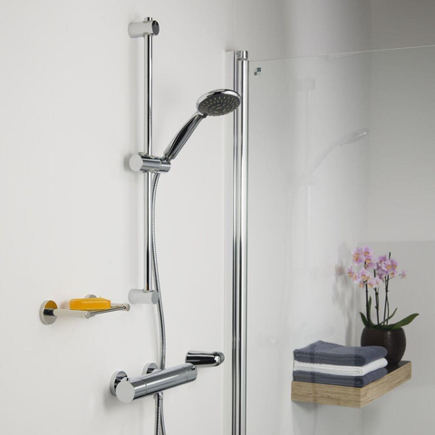- Barre de douche d'environ 67 cm avec mécanisme coulissant réglable et pivotant pour un positionnement optimal de la douchette.