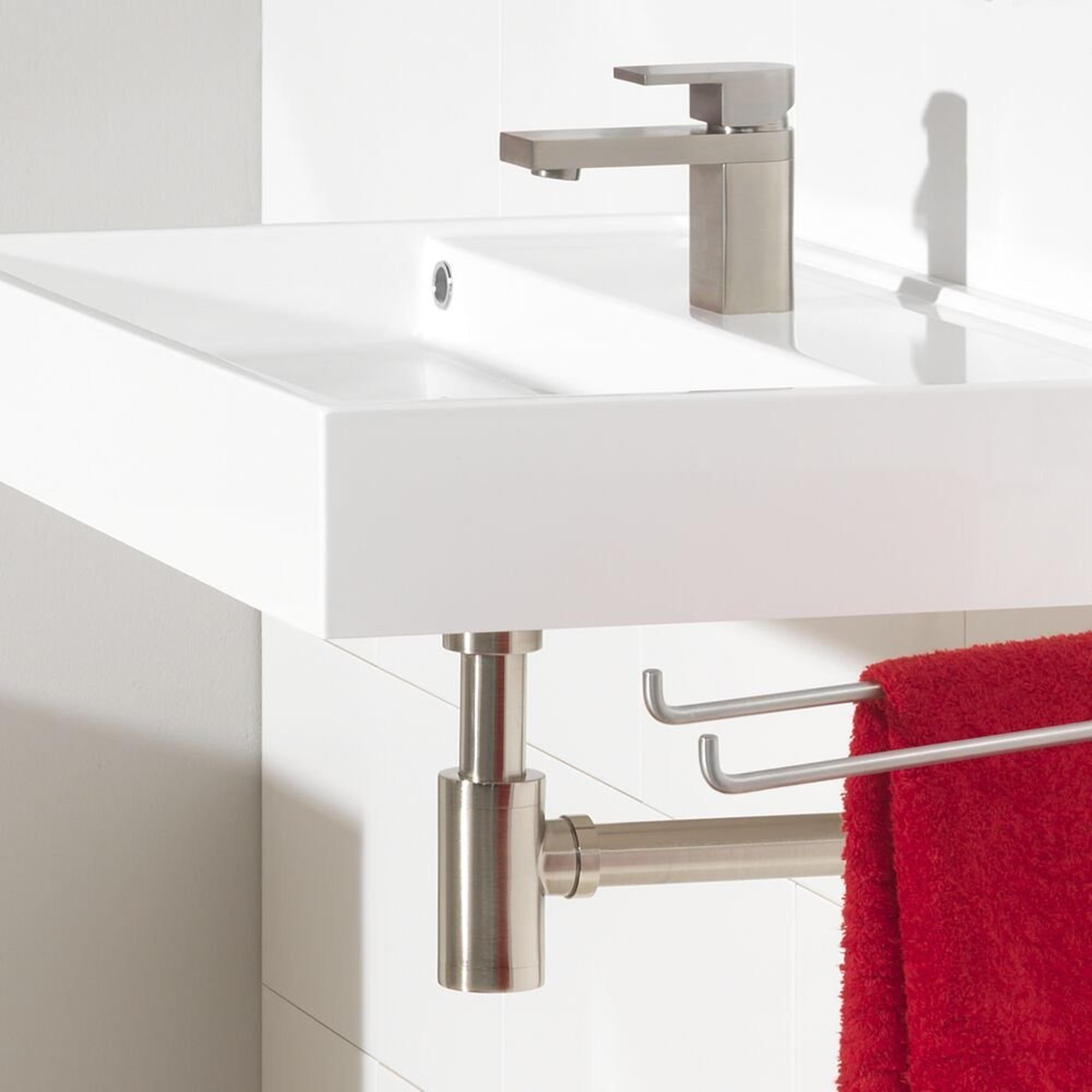 Dans une configuration de lavabo ouverte, l’évacuation joue un rôle prépondérant dans l’aspect global. Avec ce siphon design, vous optez pour des lignes droites et une forme en L qui passe élégamment sous votre lavabo, sans fioritures inutiles. Le look inox brossé s’accorde parfaitement avec les robinets de lavabo modernes, les pommes de douche et les autres éléments métalliques de la pièce. Il en résulte une unité de couleur apaisante, qui donne à votre salle de bains une apparence plus spacieuse et soignée. Grâce à sa conception fine, vous conservez également suffisamment d’espace pour les jambes sous un plan de toilette compact et même les plus petits WC semblent moins encombrés.
