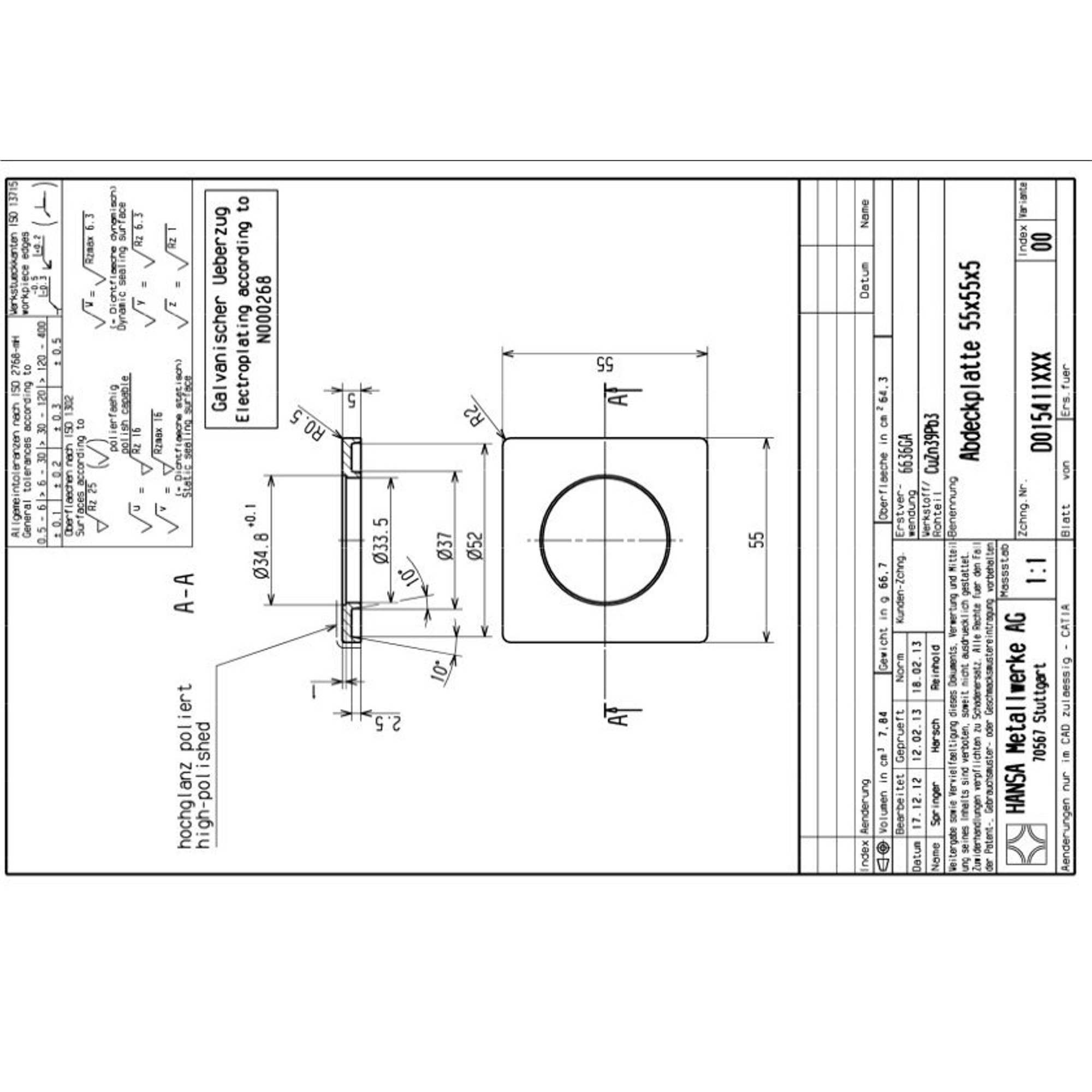 Hansa Hansaliving rosace carrée pour robinets avec commande latérale 5,5x5,5cm chrome