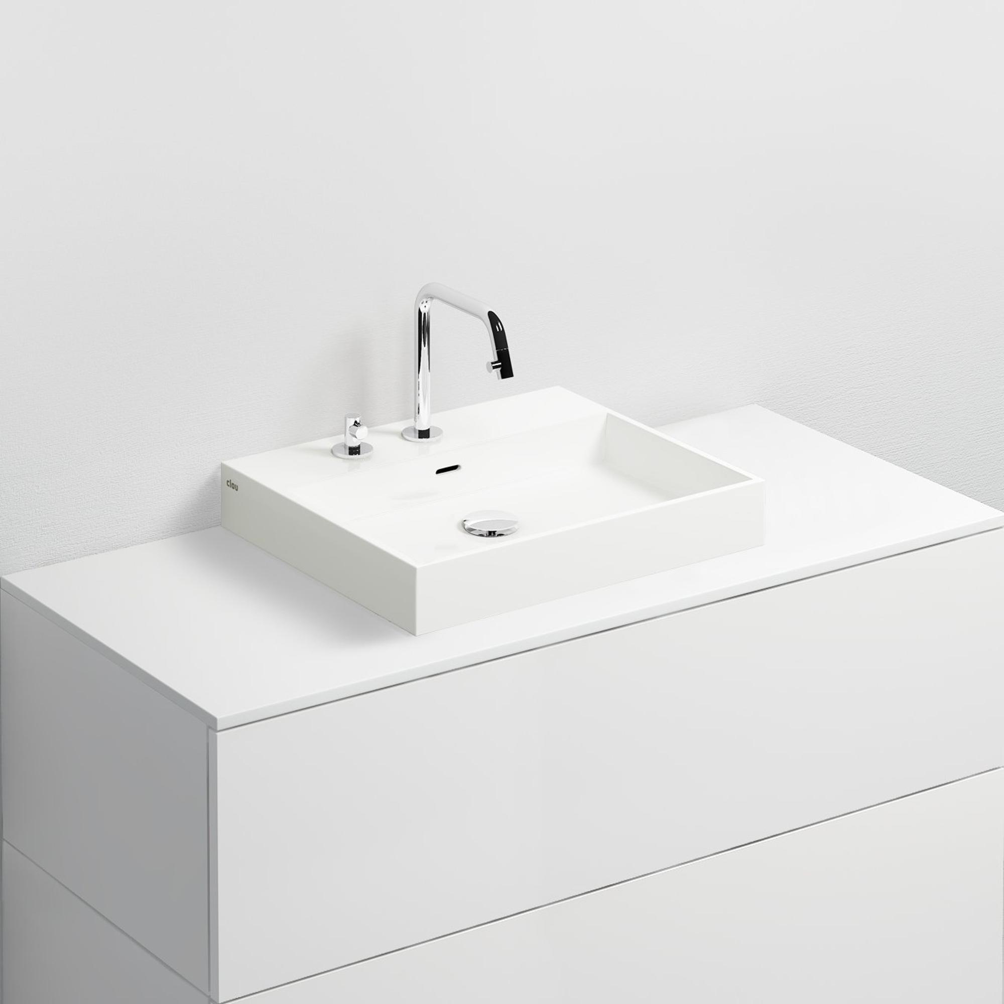 Ce lavabo est doté de trois trous de robinetterie pré-percés, ce qui vous permet de déterminer vous-même si vous souhaitez une configuration de robinet à 1, 2 ou 3 trous. Le mode d’emploi explique clairement comment percer davantage un trou de robinet. Si vous désirez un ensemble encore plus épuré et un nettoyage supplémentaire facilité, vous pouvez également choisir de combiner ce lavabo avec un robinet mural. En termes de montage, vous bénéficiez également d’une liberté de choix : il peut être fixé directement au mur ou utilisé comme lavabo à poser sur une tablette. Vous adaptez ainsi l’installation à l’espace disponible et au style souhaité, d’un look minimaliste suspendu à une configuration plus proche d’un meuble.