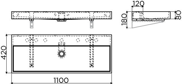 La dimension généreuse de 110x42 cm vous offre une grande liberté de mouvement, tandis que la conception intelligente fait en sorte que le lavabo paraisse fin et ne pende pas de manière massive au mur. La vasque intégrée subtile maintient l’ensemble apaisé et assure une profondeur suffisante pour limiter les éclaboussures. Grâce aux lignes droites et au plateau plat, vous pouvez en outre facilement placer un distributeur de savon, un gobelet ou d’autres petits accessoires de salle de bains, sans que cela ne devienne désordonné. Cela rend ce lavabo particulièrement adapté à une utilisation quotidienne intensive, par exemple dans une salle de bains familiale ou dans une élégante salle de bains pour invités où confort et esthétique se rejoignent.