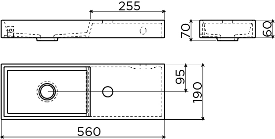 Avec une largeur de 56 cm et une profondeur de seulement 19 cm, ce lave-mains offre exactement ce dont vous avez besoin dans un petit espace : un confort de lavage suffisant sans qu’il ne dépasse de façon gênante. La position du robinet sur le côté droit permet une utilisation optimale de l’espace disponible, tandis que la cuve elle-même peut être placée près du mur. Vous conservez ainsi l’espace de passage dans vos toilettes et l’ensemble reste calme et dégagé visuellement. Ce modèle élancé est donc idéal pour les WC étroits, sous un mur en pente ou dans une niche où les lave-mains standards sont souvent un peu trop grands. Vous profitez d’un point d’eau à part entière, mais dans un format compact et soigneusement étudié.