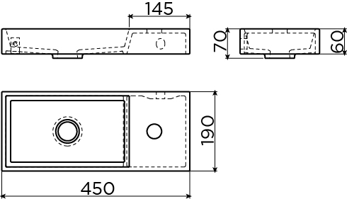 Avec une largeur de 45 cm et une profondeur de seulement 19 cm, vous exploitez au maximum l’espace le long du mur, sans que les toilettes ne paraissent exiguës. Grâce au trou de robinet situé sur le côté droit, la cuve peut être placée bien à ras du mur tout en offrant suffisamment d’espace de lavage pour vos mains. C’est idéal dans les toilettes étroites ou les niches où chaque centimètre compte. La forme rectangulaire crée en outre une ligne claire et apaisante dans votre intérieur, ce qui donne à de petits espaces une impression de grandeur. Vous combinez ainsi praticité et design bien pensé, réellement adapté à l’agencement de votre habitation.