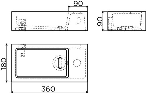 Avec une dimension de 36x18x9 cm, ce lave-mains a été spécialement développé pour les toilettes compactes, sans donner la sensation d’être trop petit et peu pratique. La forme rectangulaire offre une vasque étonnamment confortable, tandis que le plateau sur le côté droit laisse de la place pour un distributeur de savon ou de petits accessoires. Comme aucun trou de robinet n’est prévu de série, vous pouvez parfaitement combiner ce lave-mains avec un robinet encastré ou mural épuré pour un look ultra minimaliste. Vous préférez tout de même un robinet sur plage ? Alors votre installateur peut facilement percer la zone de robinet pré-usinée située à droite. Vous déterminez ainsi vous-même l’apparence et la fonctionnalité, entièrement adaptées à vos toilettes.