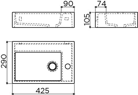 - Avec trou de robinet, adapté à un robinet de lave-mains sur gorge