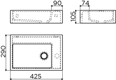 Ce lavabo en céramique Clou est livré sans trous mais avec un trou de robinetterie pré-traité. Le trou de robinet peut être percé par l'installateur à l'aide d'outils adaptés.