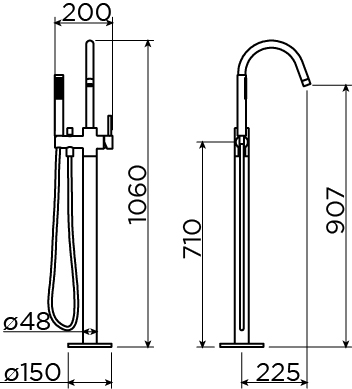 Clou XO Robinet de bain sur pied avec douchette à main type 1 106x22.5cm chrome
