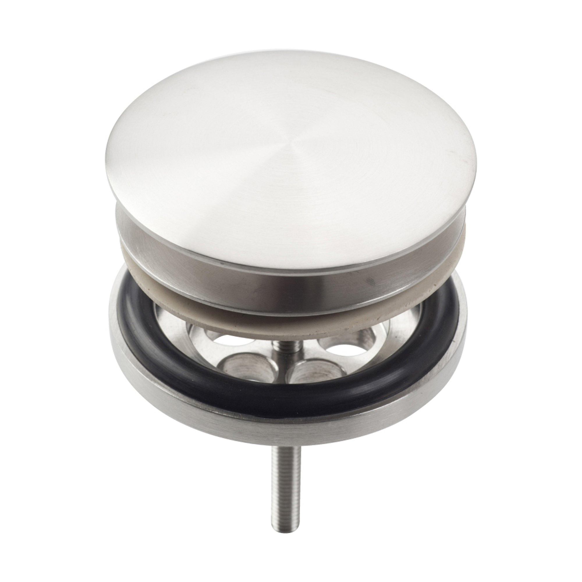 La face supérieure entièrement plate avec capuchon de recouvrement donne à votre lavabo une allure calme et ordonnée. Comme la vis et la technique sont soigneusement dissimulées, vous ne voyez qu’un disque rond et épuré en inox brossé. L’aspect est luxueux sans être criard, et convient ainsi aussi bien aux salles de bains minimalistes qu’aux styles plus industriels ou hôtel chic. Grâce à la dimension standard pour l’orifice d’évacuation, la bonde s’adapte parfaitement à la plupart des modèles de lave-mains et de lavabos. Vous pouvez ainsi raccorder l’évacuation de manière harmonieuse à votre robinet et à votre siphon, sans qu’aucun élément gênant n’attire l’attention.