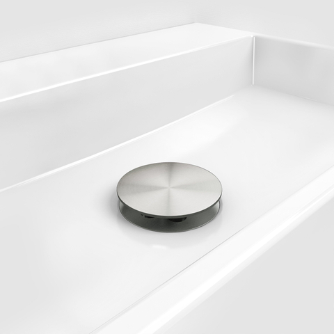 Ce bouchon d’évacuation n’est pas obturable et reste donc ouvert en permanence. Cela peut paraître simple, mais c’est justement un avantage dans de nombreuses situations. Dans des toilettes ou avec une petite fontaine, vous n’avez généralement pas besoin de garder l’eau dans le lavabo et vous voulez surtout qu’elle s’écoule rapidement et en toute sécurité. Grâce à la bonde ouverte, vous évitez que la cuve ne se remplisse involontairement et vous n’avez pas de pièces mobiles ou de boutons susceptibles de s’user ou de tomber en panne. Le capot de recouvrement fixe permet en même temps de dissimuler la technique et de donner à l’orifice d’évacuation une apparence toujours propre et soignée.