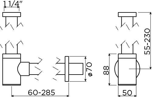 - Avec rosace et tube mural pour un raccord mural propre et fini