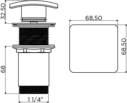 Clou InBe stop/go bouchon de vidage 6.9x0cm sans trop-plein carré universel chrome