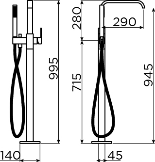 - Hauteur d’environ 102,5 cm et saillie du bec de 22 cm pour un usage confortable de la baignoire.