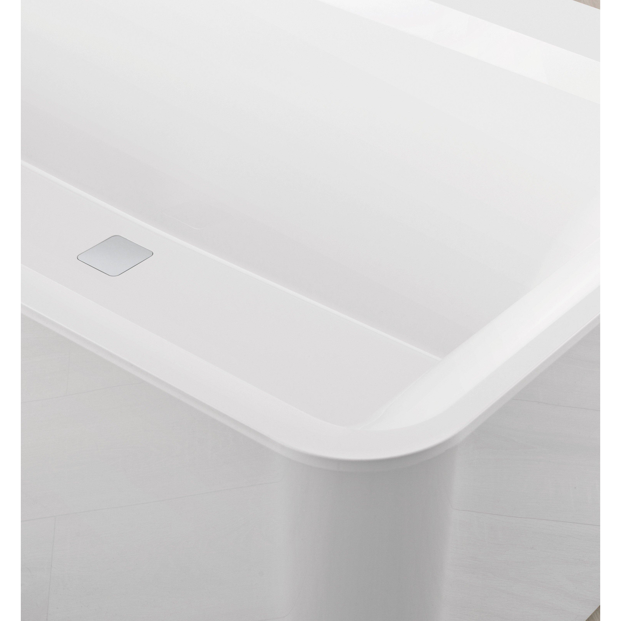 Villeroy & Boch Squaro edge 12 Baignoire îlot 180x80cm rectangulaire quaryl avec panneau et vidage/trop plein Blanc