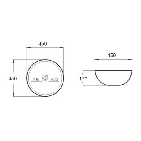- Vasque à poser ronde de 45x45 cm : équilibre parfait entre compacité et confort d'utilisation.