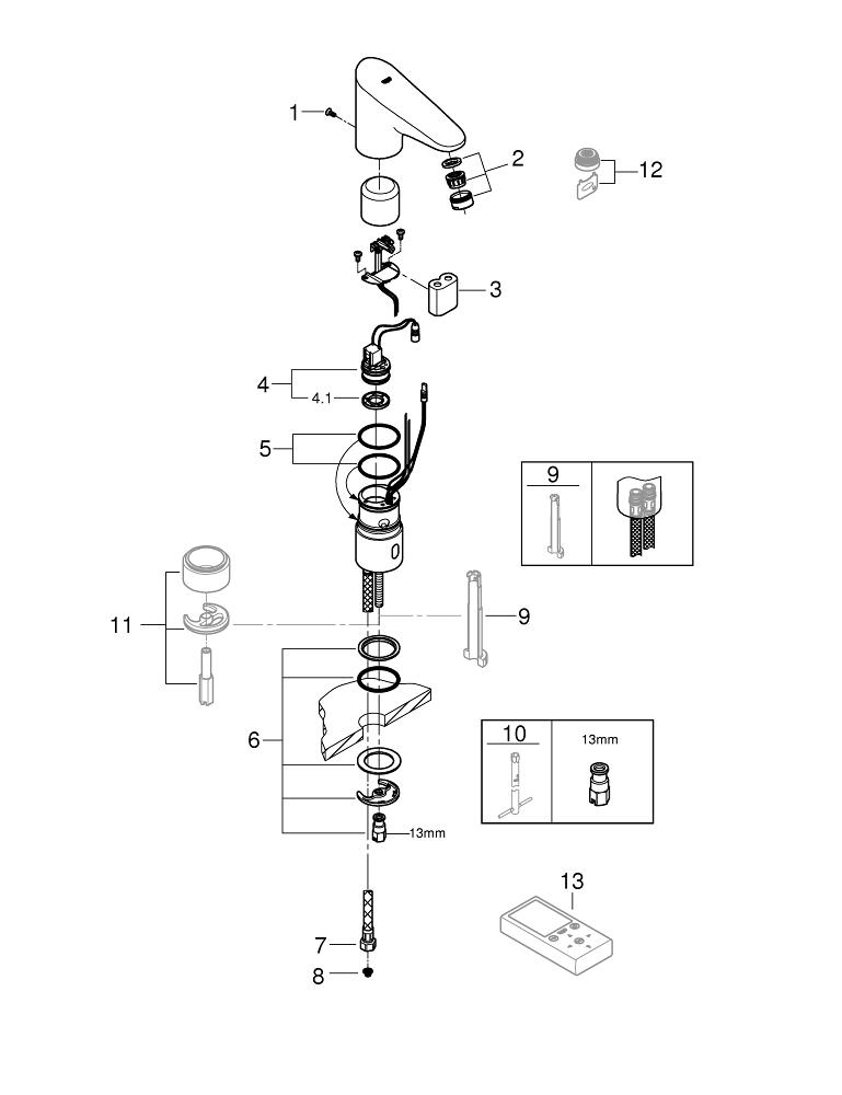 GROHE Europlus E robinet de lavabo à économie d'eau infrarouge sans mélange à alimentation par pile 6V chrome