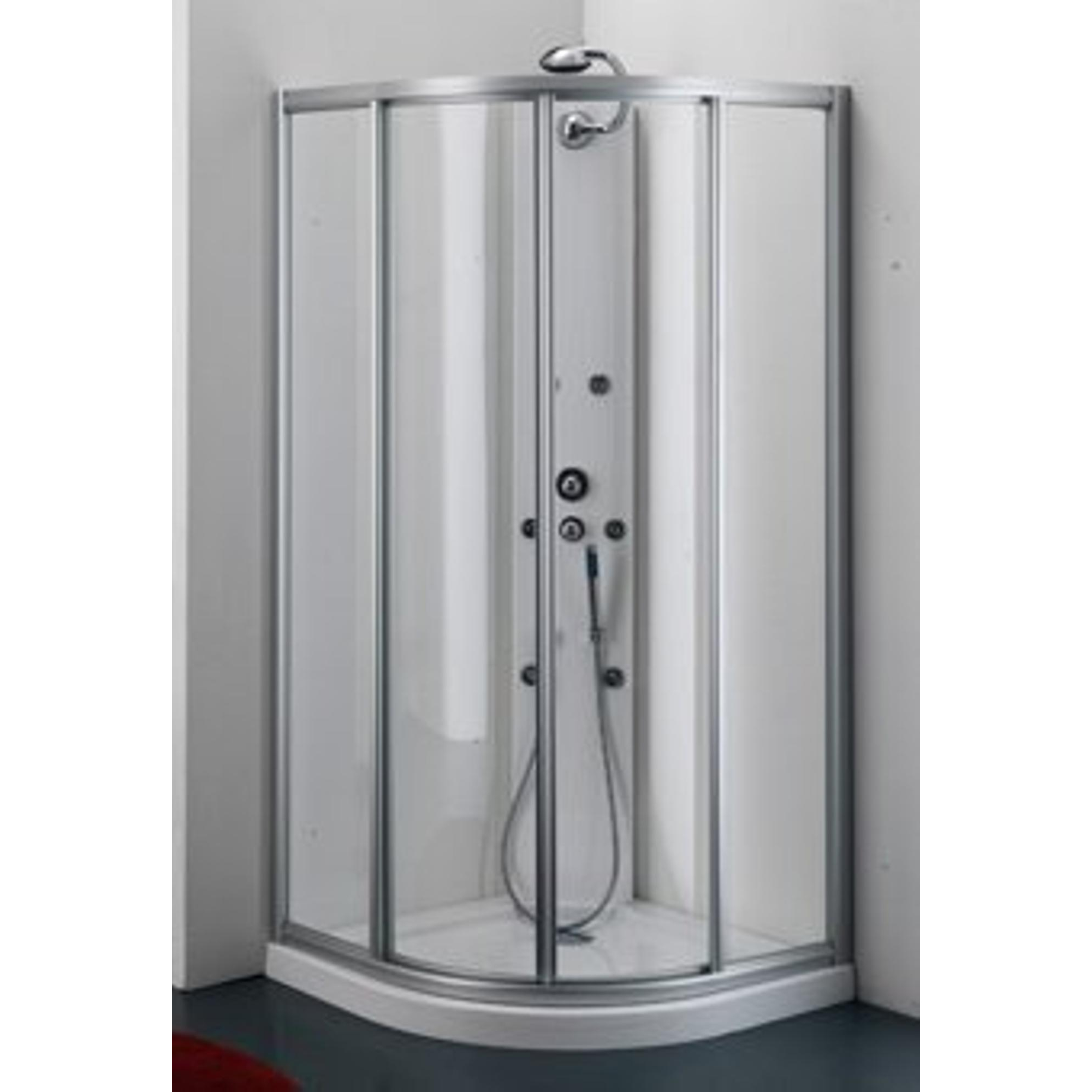 - Cabine de douche quart de cercle de 90x90 cm, idéale pour une installation dans un angle et adaptée aux salles de bains de petite à moyenne taille.