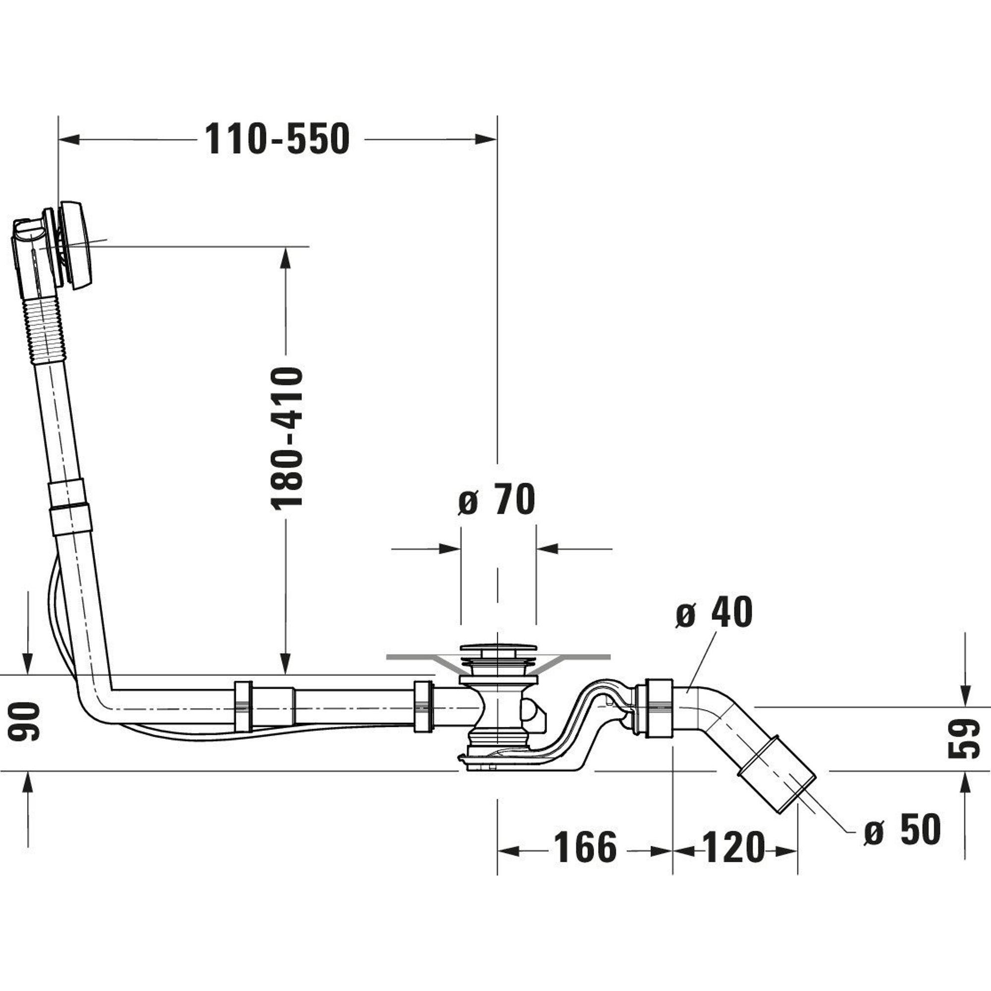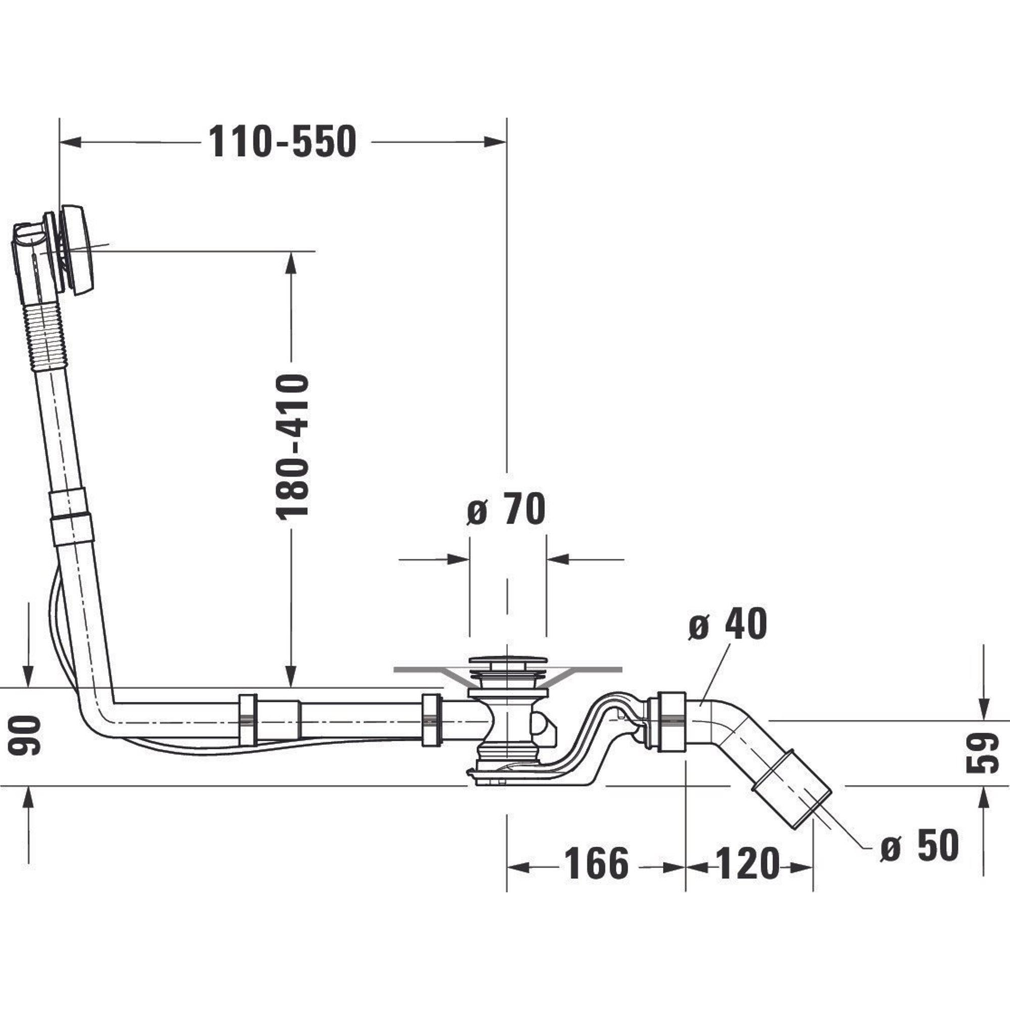 - Bonde à câble (câble Bowden) pour une commande confortable depuis la baignoire
