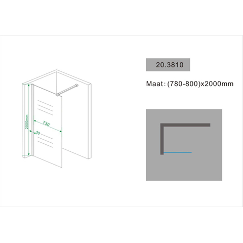 - Dimensions : 800 x 2000 x 10 mm (largeur x hauteur x épaisseur du verre)