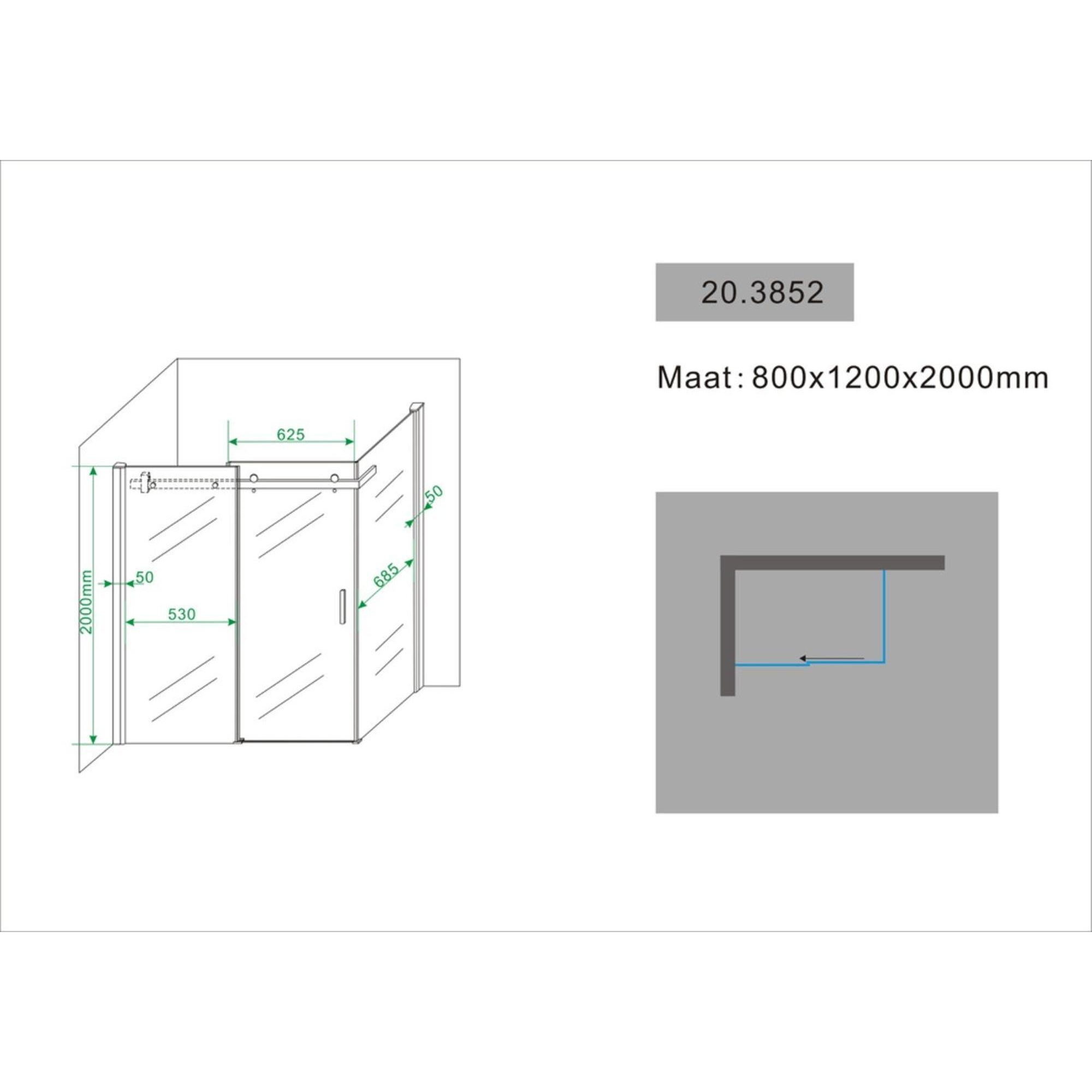 Wiesbaden Pared Porte de douche avec paroi 80x120x200cm chrome verre 8mm NANO