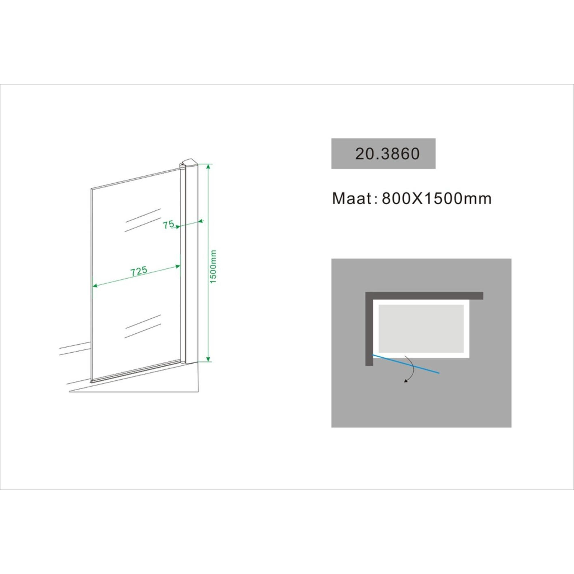 Wiesbaden Palmo paroi de baignoire pivotante 800 x 1500 x 6 mm verre clair nano/chrome