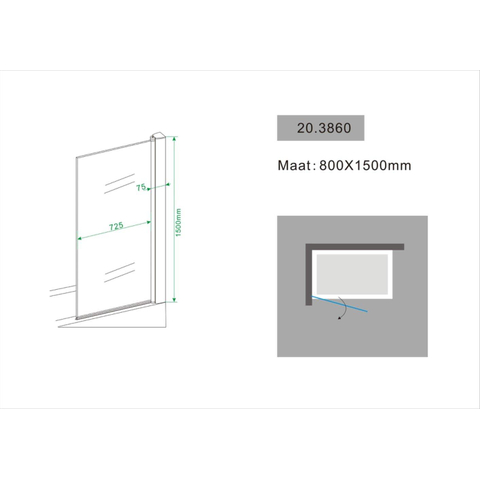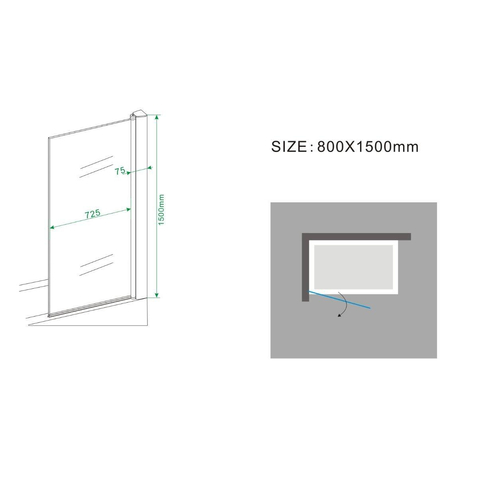 - Paroi de baignoire pivotante de 80 x 150 cm, adaptée pour montage à gauche ou à droite