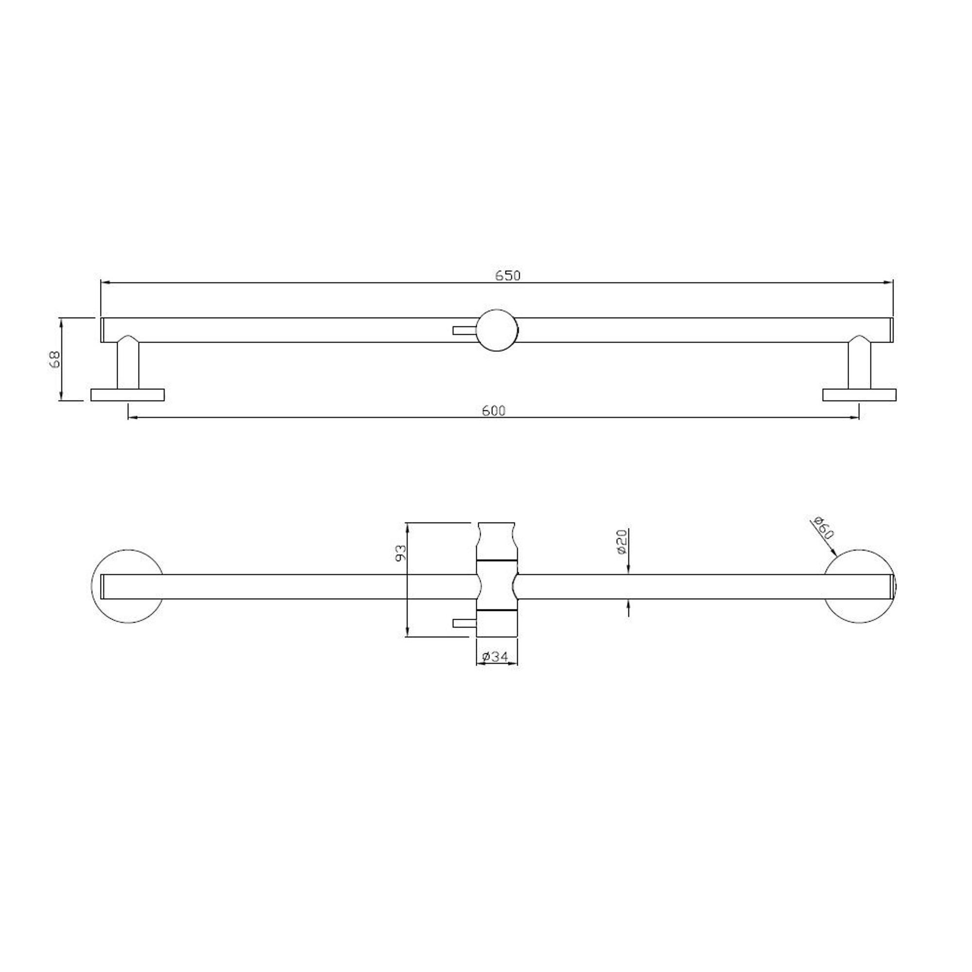 - Barre ronde avec diamètre d’environ 20 mm : fine et discrète contre le mur