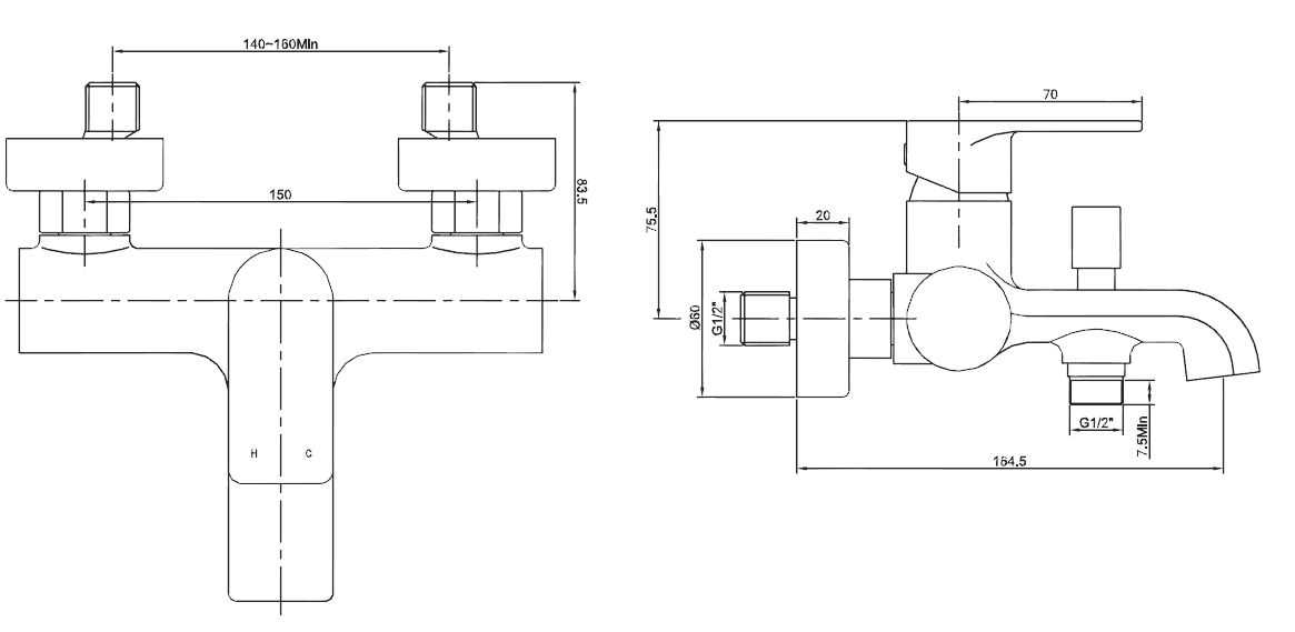 Wiesbaden Lima mélangeur baignoire avec chrome