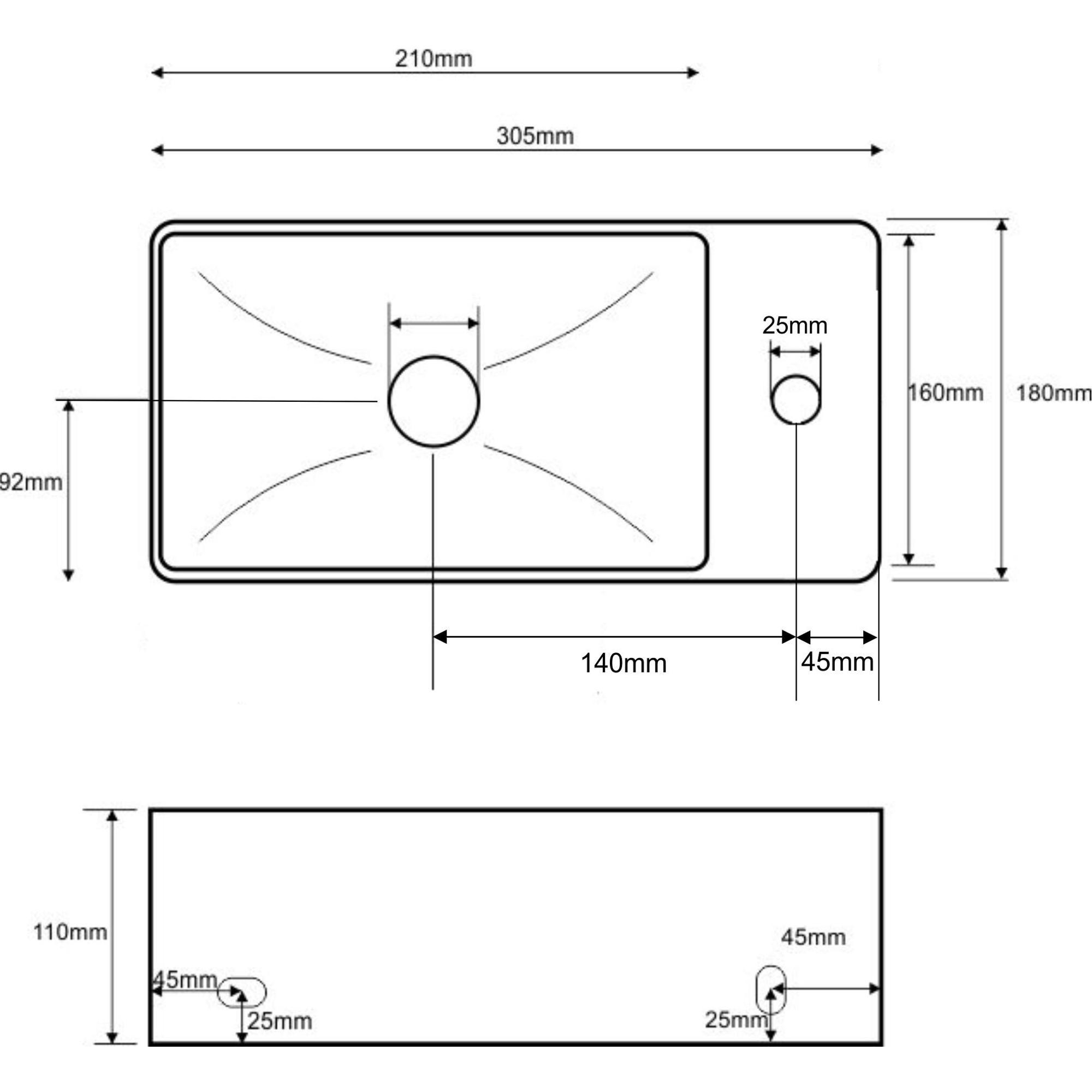 - Trou de robinet à droite avec un diamètre de 25 mm pour un placement flexible du robinet