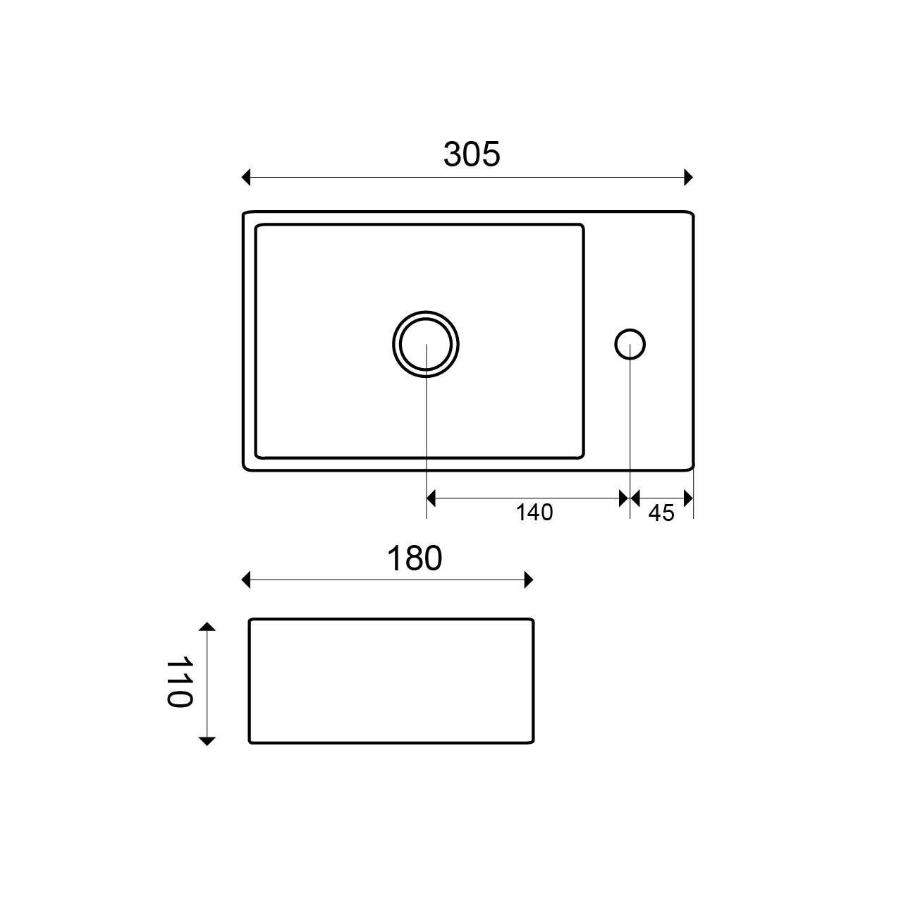Wiesbaden Rhea xxs lave-mains droite 30,5 x 18 x 11 cm céramique brillant blanc
