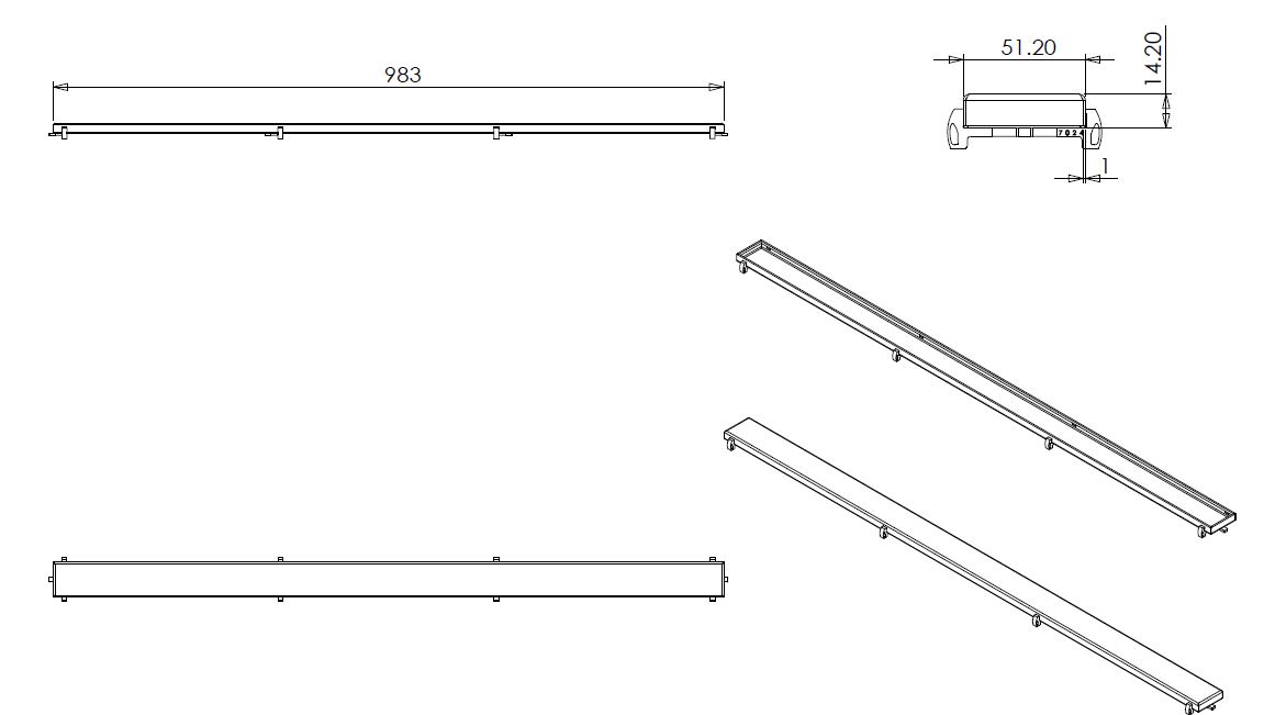 Grille de carrelage Wiesbaden pour caniveau de douche 100 x 7 cm inox