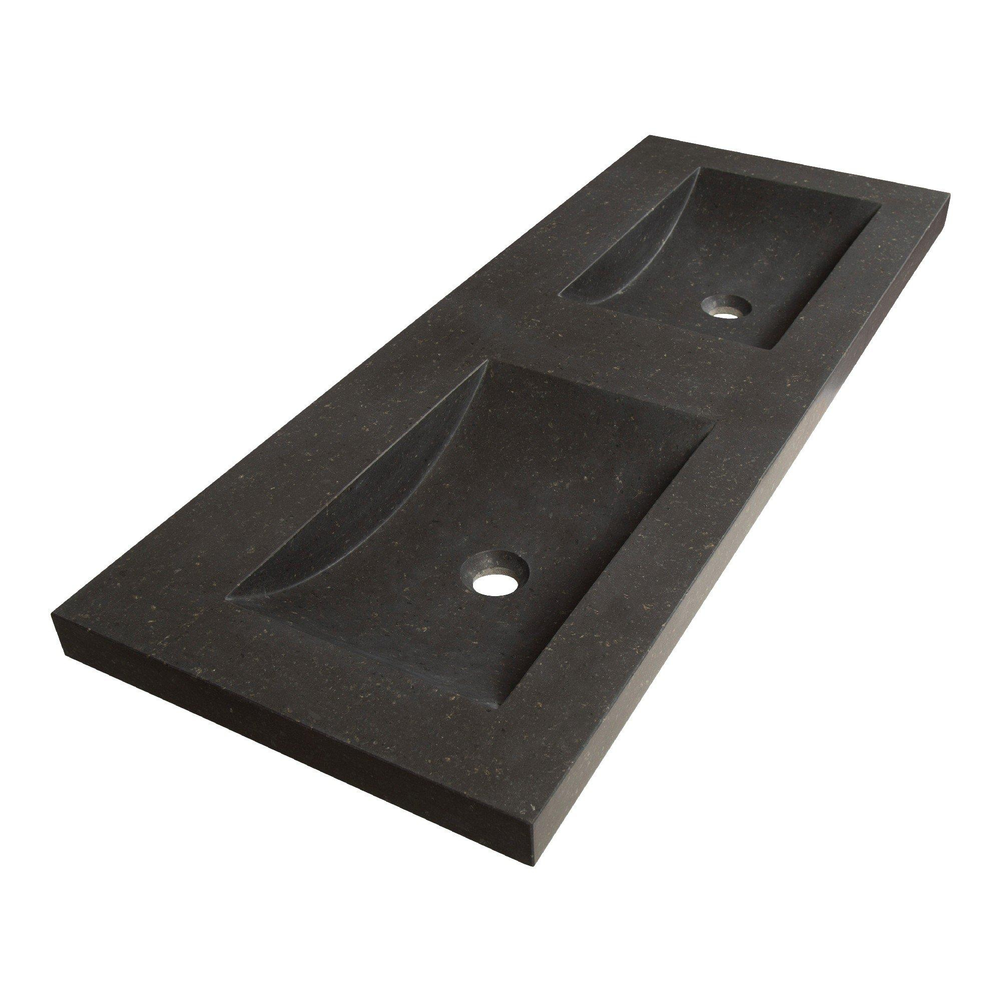 BRAUER Corestone Lavabo pour meuble - 120x46x5cm - sans trop-plein - 2 bacs gauche/droite - sans trou de robinet - pierre naturelle - basalte