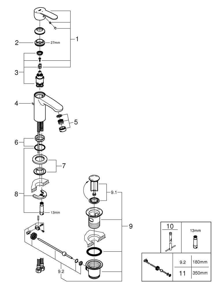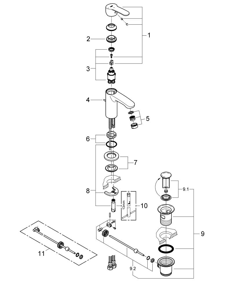 GROHE Eurostyle Cosmopolitan robinet de lavabo économique avec vidage 1 44652 avec cartouche ES 28 mm chrome