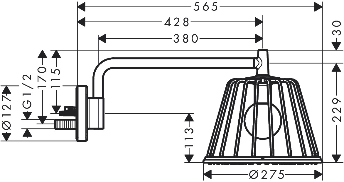 AXOR Nendo Lampe Douche 27,5 cm avec bras de douche 38 cm chrome