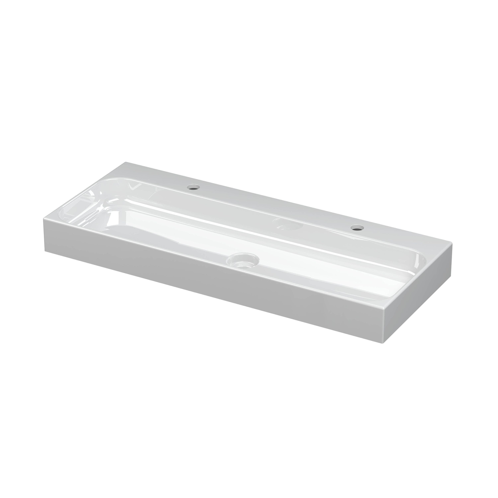 INK Unit lavabo - 100x40x10cm - 1 bassin - 2 trous de robinet - porcelaine blanc brillant