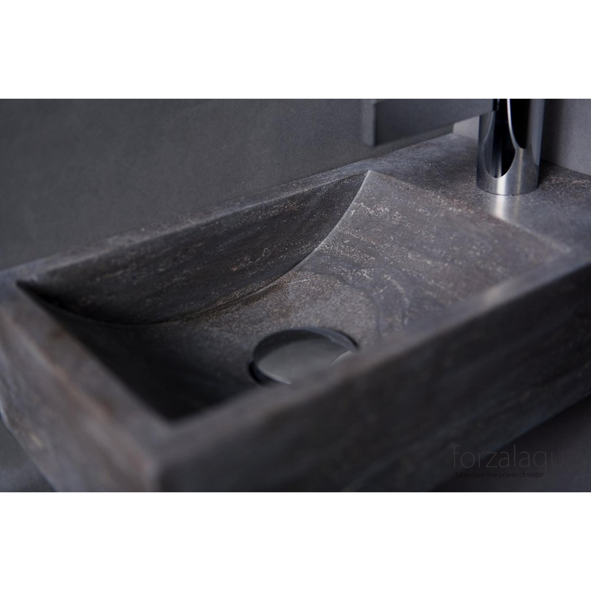 Forzalaqua Venetia lave-mains 40x22x10cm lavabo gauche 1 trou de robinet droit Pierre naturelle Granit adouci