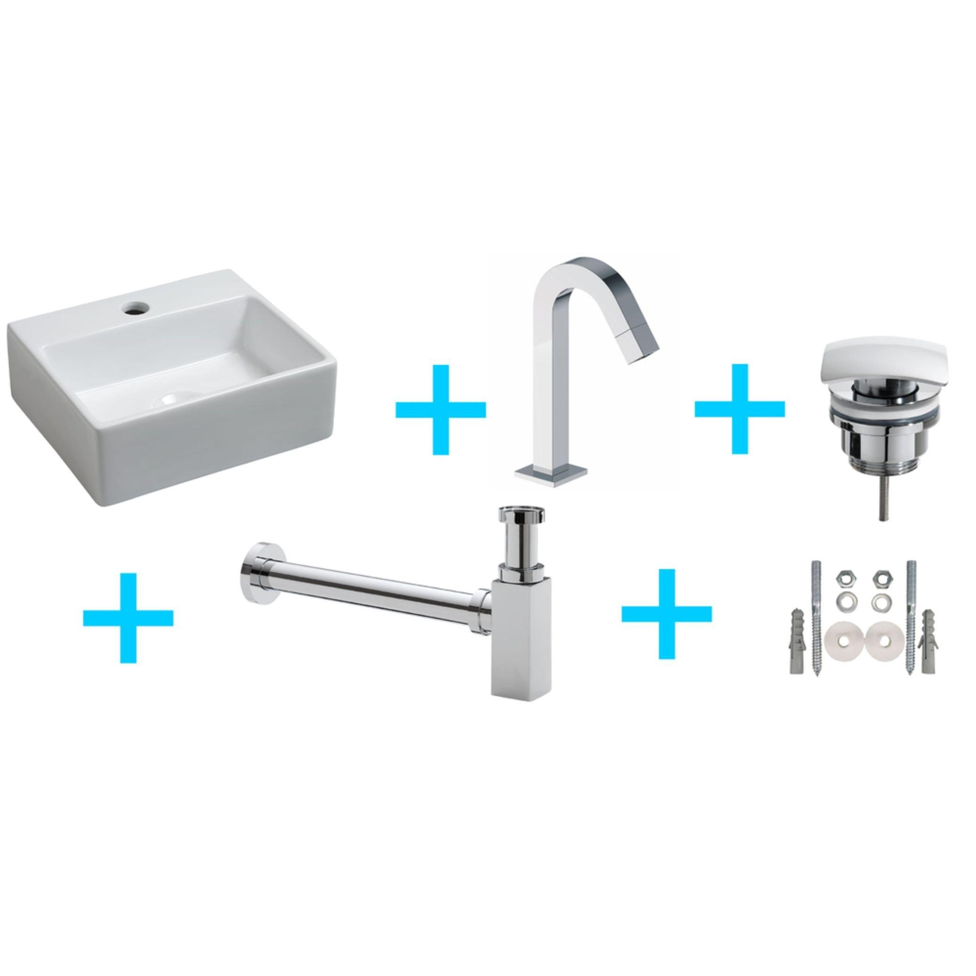 Wiesbaden Leto ensemble lavabo complet avec robinetterie incluant bonde et siphon