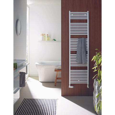 Fabriqué en acier de haute qualité avec une finition blanche brillante (RAL 9016), ce radiateur est non seulement robuste mais aussi facile à nettoyer. La surface lisse empêche l'accumulation de poussière et de saleté, ce qui réduit le temps consacré à l'entretien. De plus, le matériau durable garantit que vous profiterez pendant des années d'une chaleur fiable et d'un bel aspect, même dans des conditions humides de salle de bains.Design épuré et parfaitement intégré