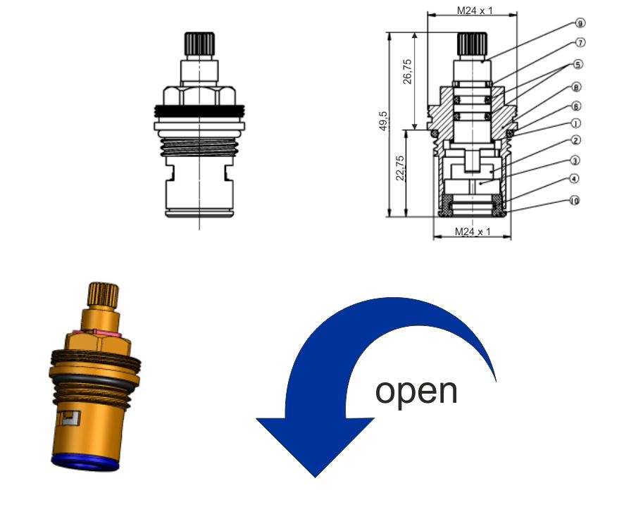 - Convient comme tête supérieure pour le remplacement du mécanisme intérieur des robinets sanitaires